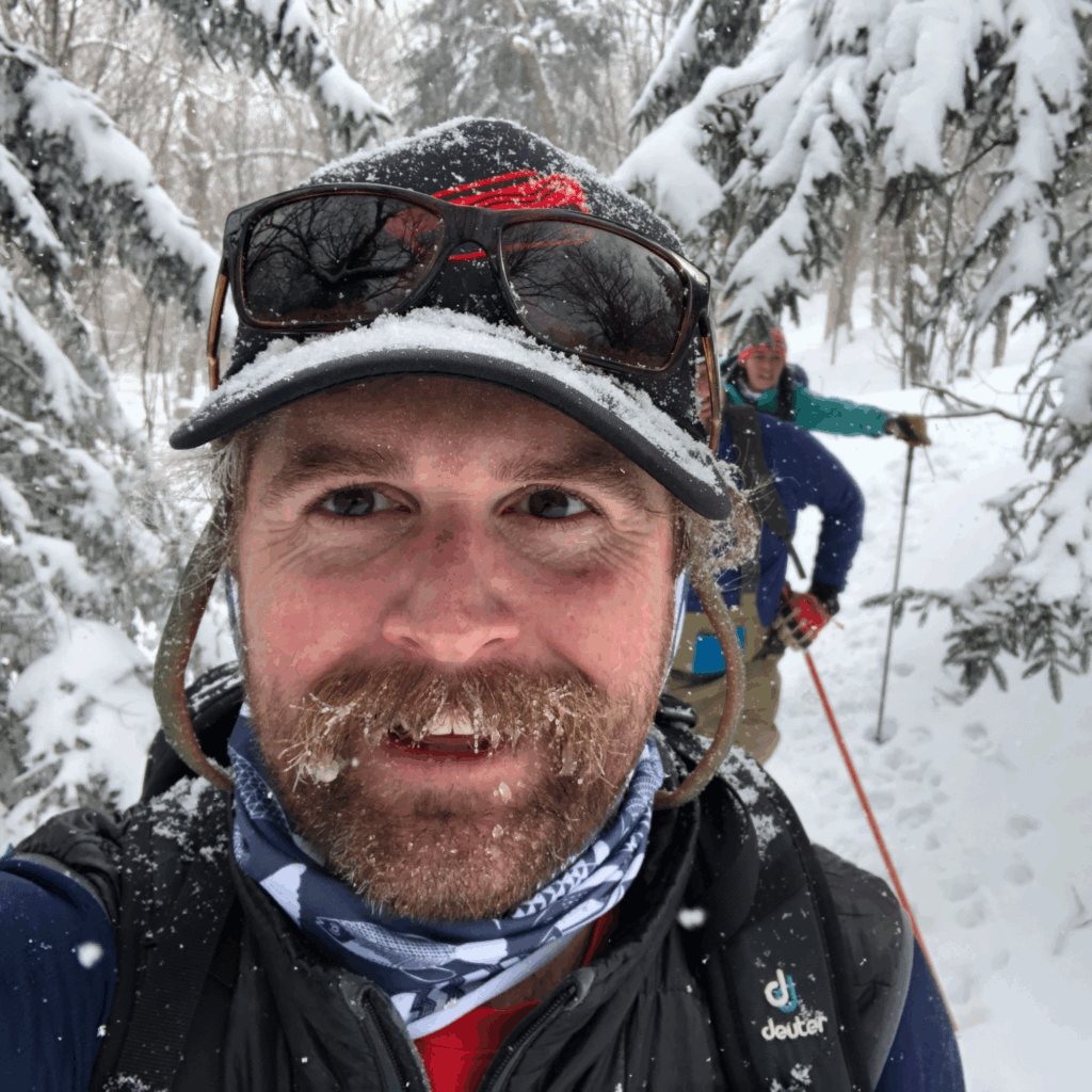 Nate grew up in Vermont and spent a decade in Montana before eventually returning home. Nate learned to ski at the Middlebury Snowbowl and got an early start hiking skis up the old Norwich Ski Area, sparking a lifelong love for earning turns. These days, Nate can most often be found skiing in the Brandon Gap backcountry. He has recently taken up mountain biking and loves exploring the trails built and maintained by the Ridgeline Outdoor Collective. Nate works as an elementary school teacher and is happiest outside – on skis or a bike -moving through the mountains.