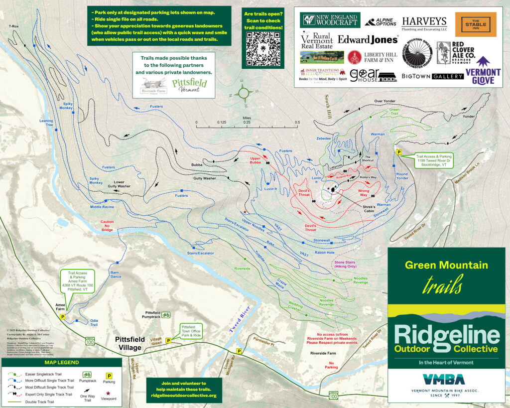 In 2019 Green Mountain Trails joined the Ridgeline Collective. Just 20 minutes south on RT 100 from the Rochester Village there is easy access to great technical trails for all abilities on private land that stretches across Pittsfield, Stockbridge, and Chittenden. Check out their website for great detail on how to access the trails, parking details and enjoy an extended stay or day trip to this ambitious and super fun network of trails.